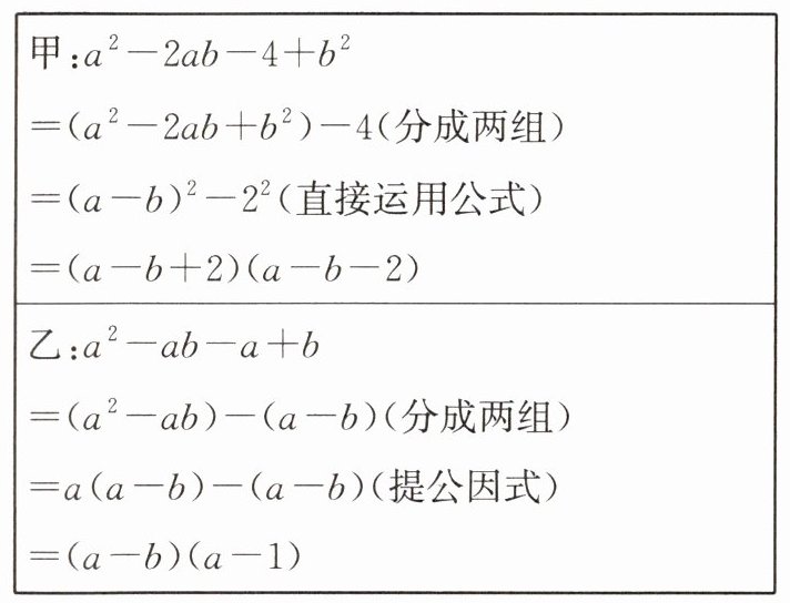 10. “探究性学习”小组的甲、乙两名同学进行因式分解如下。
