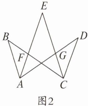 (2)如图2,AE,CE分别平分∠BAD,∠BCD,运用(1)的结论求证:∠B+∠D= 2∠E。