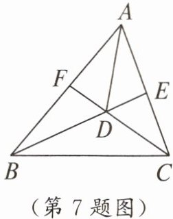 7. 如图,在△ABC中,BE,CF是角平分线,BE,CF相交于点D,连接AD,∠ABC= 50°,∠ACB= 70°,则∠ADE为