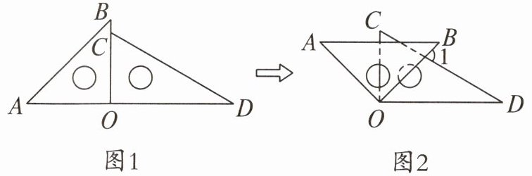 3. 一副三角尺摆放位置如图1所示,把三角尺AOB绕公共顶点O顺时针旋转至图2,即AB//OD时,∠1为