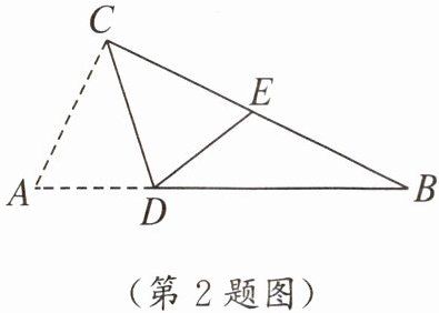 2. 如图,在△ABC中,∠A = 64°,点D在AB上,将△ABC沿CD折叠,使点A落在BC边上的点E处,若∠B = 26°,则∠BDE为
