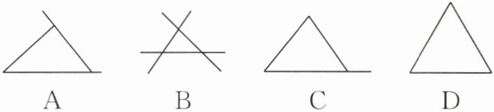 1. 下面是一位同学用三根木棒拼成的图形,其中以三根木棒为边组成的三角形是(