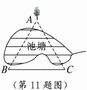 11. 如图,在一个池塘两旁有一条笔直小路(B,C为小路端点)和一棵小树(A为小树位置). 测得△ABC为等边三角形,BC= 48 m,则AC=