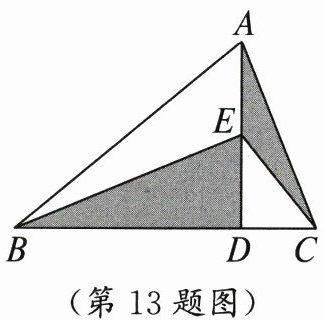 13. 如图,点D是△ABC的边BC上异于B,C的任意一点,点E是线段AD的中点,若S△ABC= 12,则阴影部分的面积为