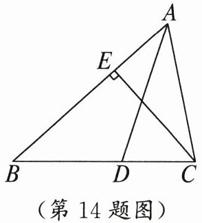 14. 如图,AD是△ABC的角平分线,CE是△ABC的高,∠BAC= 60°,∠ACB= 78°,若点F为边AB上一点,当△BDF为直角三角形时,则∠ADF的度数为
