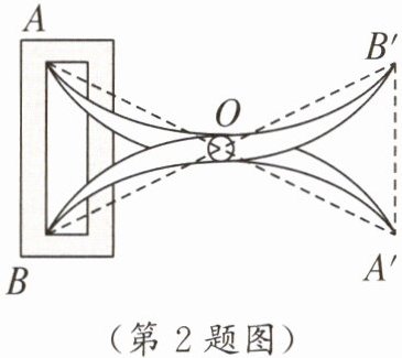 2. 如图,将两根钢条AA',BB'的中点O连在一起,使AA',BB'可以绕着点O自由转动,就做成了一个测量工具,则A'B'的长等于内槽宽AB,那么判定△OAB≌△OA'B'的基本事实简写为“