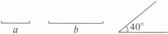 5. 如图,已知一个三角形有两条边分别是$a和b$,一个内角为$40^{\circ}$。按要求作图,并在所作图中标出已知角的度数和已知边的长度,不要求写作法,但要保留作图痕迹。