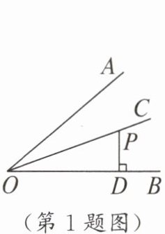 1. (2024·青海中考)如图,OC平分∠AOB,点P在OC上,PD⊥OB,PD= 2,则点P到OA的距离是(