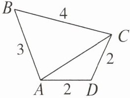 4. 四边形 $ ABCD $ 的边长如图所示,线段 $ AC $ 的长度随四边形形状的改变而变化. 当 $ \triangle ABC $ 为等腰三角形时,$ AC $ 的长为(