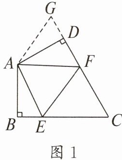 如图1,在四边形ABCD中,AB= AD,∠BAD= 120°,∠B= ∠ADC= 90°,E,F分别是BC,CD上的点,且∠EAF= 60°,探究图中线段BE,EF,FD之间的数量关系.