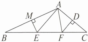 6. 如图,在 $ \triangle ABC $ 中,已知 $ AB $,$ AC $ 的垂直平分线分别为 $ EM $,$ FD $,连接 $ EA $,$ FA $,且 $ \angle BAC = 115° $,求 $ \angle EAF $ 的度数。
