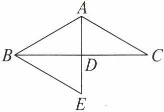 5. 如图,在 $ \triangle ABC $ 中,点 $ D $ 为 $ BC $ 边的中点,过点 $ B $ 作 $ BE // AC $ 交 $ AD $ 的延长线于点 $ E $。