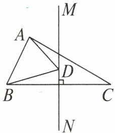 4. 如图,在 $ \triangle ABC $ 中,$ AB = 5 $,$ BC = 10 $,$ AC = 9 $,$ MN $ 为边 $ BC $ 的垂直平分线,点 $ D $ 为直线 $ MN $ 上一动点,则 $ \triangle ABD $ 的周长的最小值为(
