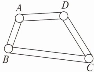 9. 探究:如图,用钉子把木棒 $ AB $,$ BC $ 和 $ CD $ 分别在端点 $ B $,$ C $ 处连接起来(端点处可活动),用橡皮筋把 $ AD $ 连接起来. 设橡皮筋 $ AD $ 的长是 $ x $.