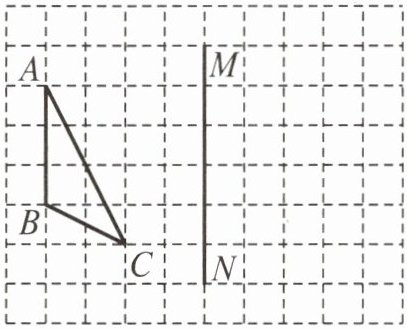 7. 如图,在方格纸中,已知 $\triangle ABC$ 和直线 $MN$,点 $A$,$B$,$C$ 都在格点上。