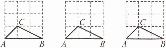 6. 在方格纸中,每个小格的顶点叫作格点,以格点为顶点的三角形叫作格点三角形。如图,在 $3×3$ 的正方形格点图中,有 $\triangle ABC$,作 $\triangle DEF$ 使得 $\triangle ABC$ 和 $\triangle DEF$ 关于某直线成轴对称,请在下面的图中画出三种这样的 $\triangle DEF$。