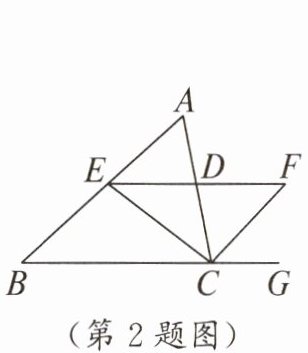 2. 如图,在△ABC 中,CE,CF 分别平分∠ACB 和∠ACG,DE = 6,EF//BC,则 DF =