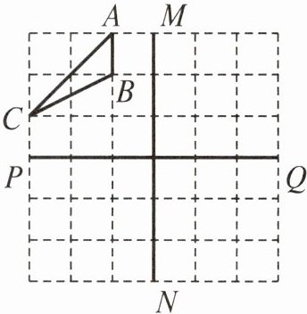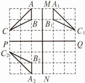 (2) 画出 $ \triangle A_2B_2C_2 $,使 $ \triangle A_2B_2C_2 $ 和 $ \triangle ABC $ 关于直线 $ PQ $ 成轴对称。