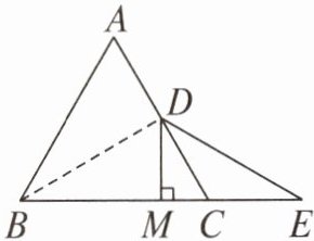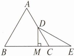 【典型例题 4】如图,已知等边三角形 $ ABC $ 中,$ D $ 是 $ AC $ 的中点,$ E $ 是 $ BC $ 延长线上的一点,且 $ CE = CD $,$ DM \perp BC $,垂足为 $ M $。