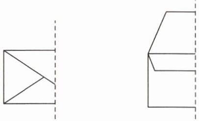 3. 如图,分别以虚线为对称轴,画出各轴对称图形的另一半。