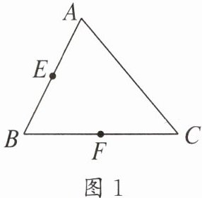 (1)如图 $1$,在 $\triangle ABC$ 中,$E$,$F$ 分别为 $AB$,$BC$ 的中点,请在图 $1$ 中画出 $AC$ 的中点 $M$;