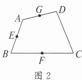 (2)如图 $2$,在四边形 $ABCD$ 中,$E$,$F$,$G$ 分别为 $AB$,$BC$,$AD$ 的中点,请在图 $2$ 中画出 $CD$ 的中点 $N$。