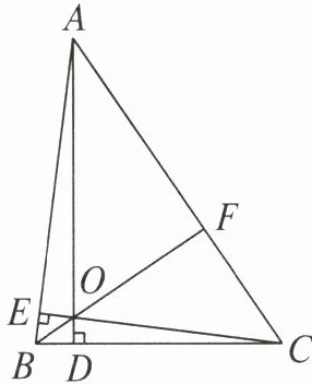 10. 如图,在 $\triangle ABC$ 中,$AD\perp BC$,$CE\perp AB$,垂足分别为点 $D$ 和点 $E$,$AD$ 与 $CE$ 交于点 $O$,连接 $BO$ 并延长交 $AC$ 于点 $F$,若 $AB = 5$,$BC = 4$,$AC = 6$,则 $CE:AD:BF$ 的值为