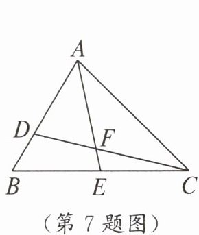 7. 如图,$AE$ 是 $\triangle ABC$ 的中线,点 $D$ 在边 $AB$ 上,$AD = 2BD$,$CD$ 与 $AE$ 交于点 $F$,设 $\triangle ADF$ 的面积为 $S_1$,$\triangle CEF$ 的面积为 $S_2$,若 $S_{\triangle ABC}= 9$,则 $S_1 - S_2 = ($