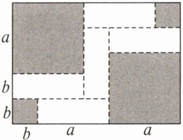 10. 如图,将一张大长方形纸板按图中虚线裁剪成 9 块,其中有 2 块是边长都为$a$厘米的大正方形,2 块是边长都为$b$厘米的小正方形,5 块是长为$a$厘米,宽为$b$厘米的相同的小长方形,且$a>b$。观察图形,尝试将代数式$2a^{2}+5ab + 2b^{2}$因式分解。