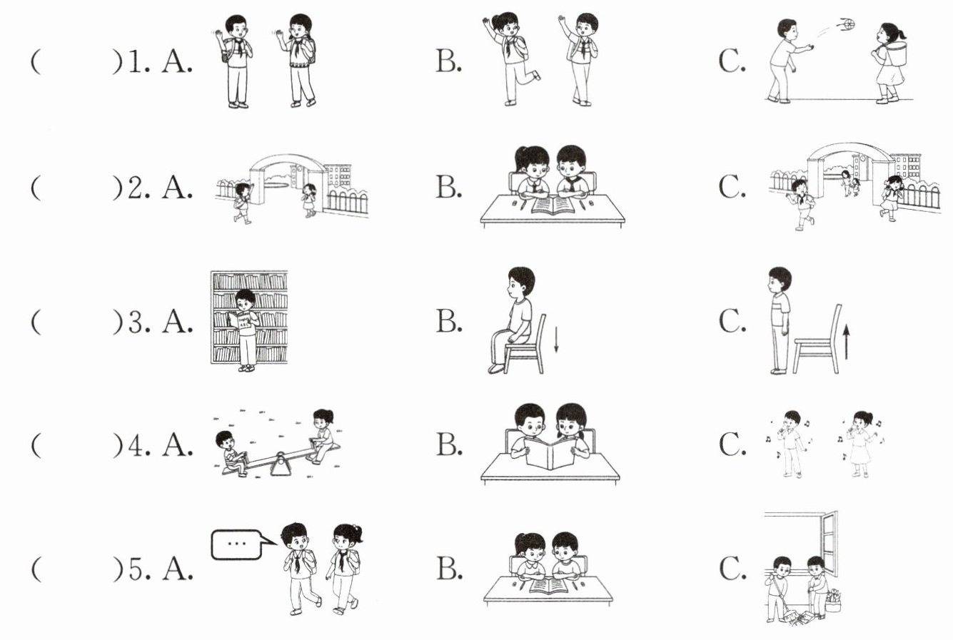 四、听对话,选图片。请根据你听到的对话内容,选出相应的图片,并将其字母标号填入题前括号内。每小题读两遍。