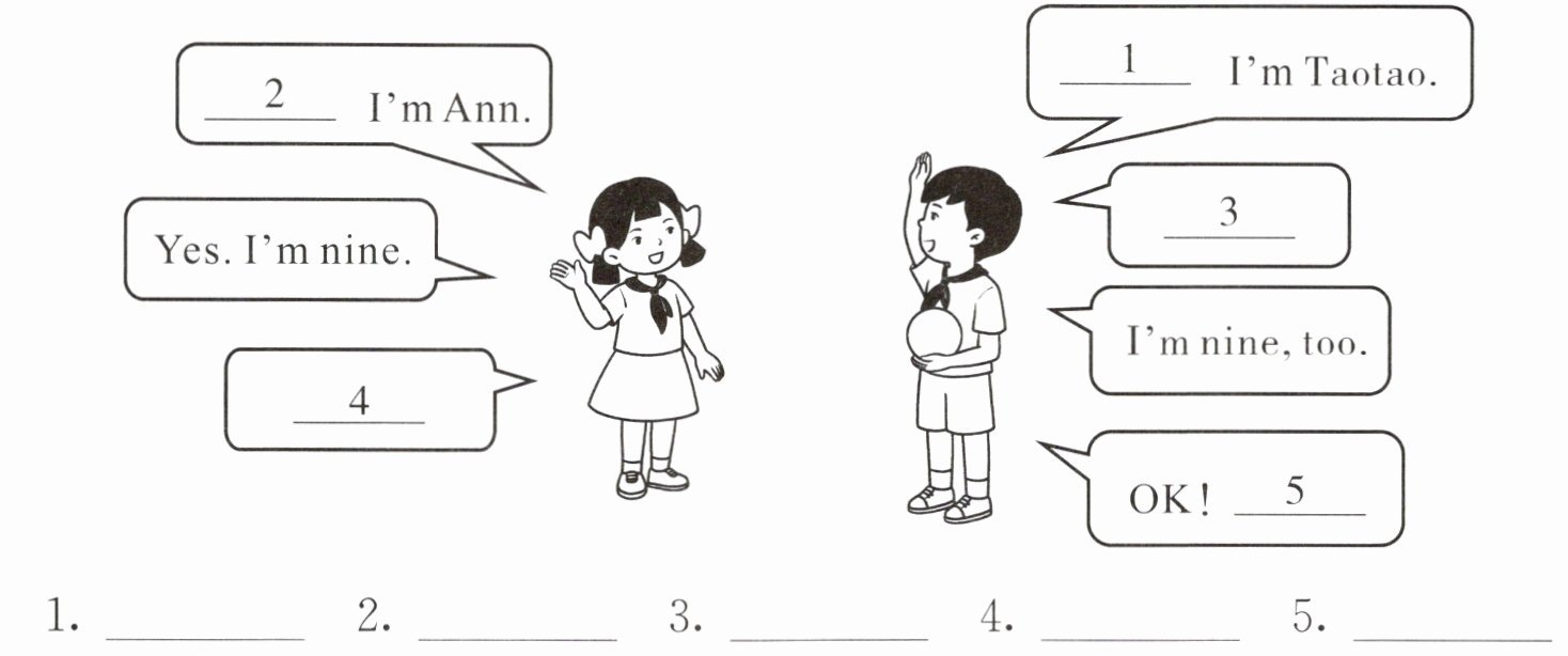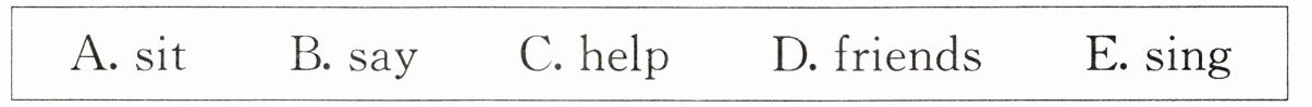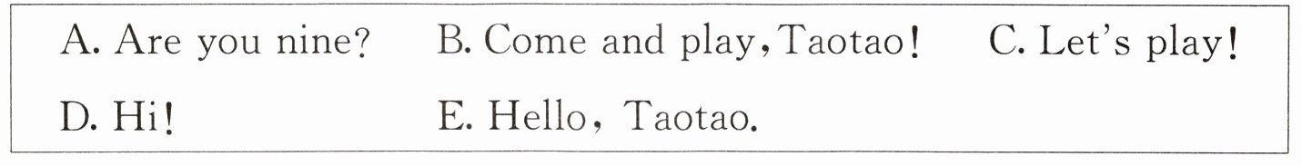 三、情景会话。请从方框中选出恰当的句子补全对话,并将其字母标号填在题目下方的横线上。