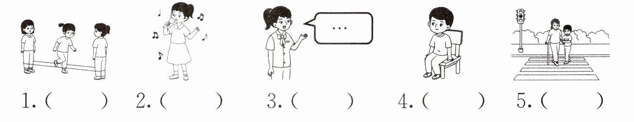 二、看图,读句子,判断所给图片与句子意思是否相符,相符的在括号内写“T”,不相符的写“F”。