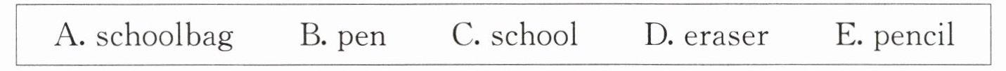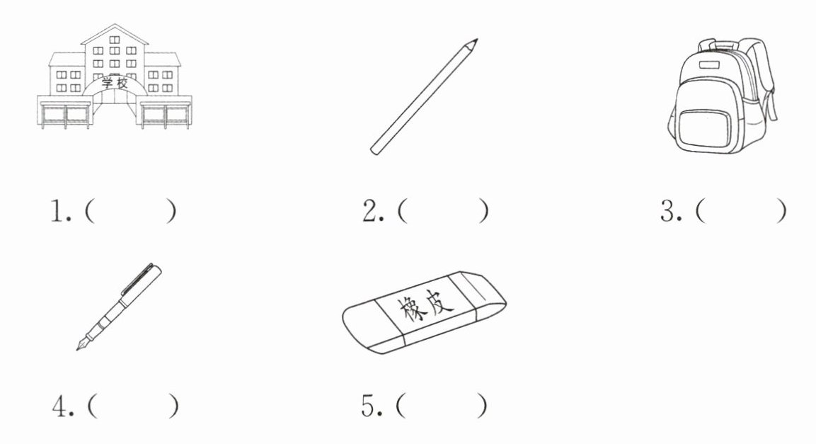 一、看图,认词语。请根据所给的图片,从方框中找出相对应的词语,并将词语前的字母标号填入图下括号内。