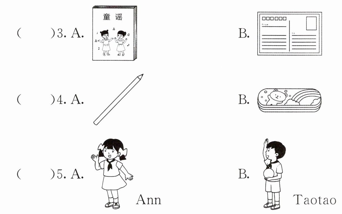三、听对话,选图片。请根据你听到的对话内容,选出相应的图片,并将其字母标号填入题前括号内。每小题读两遍。