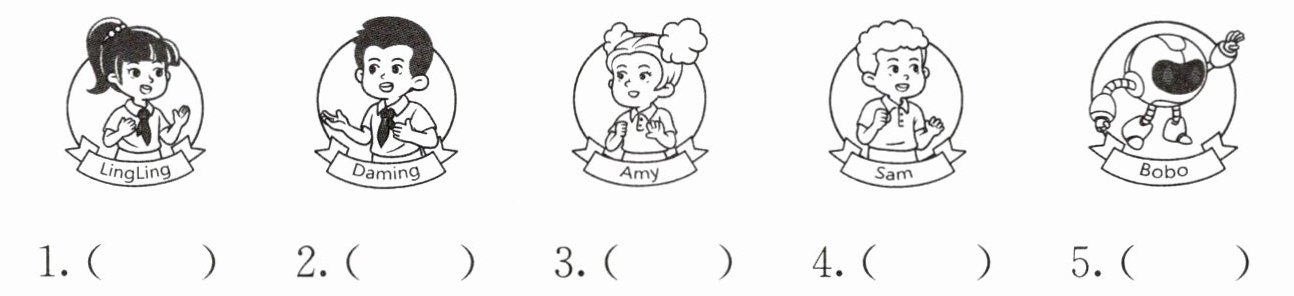 一、请听下面五段自我介绍,按照他们介绍的先后顺序,用字母 A、B、C、D、E 给下列图片排序。每小题读两遍。