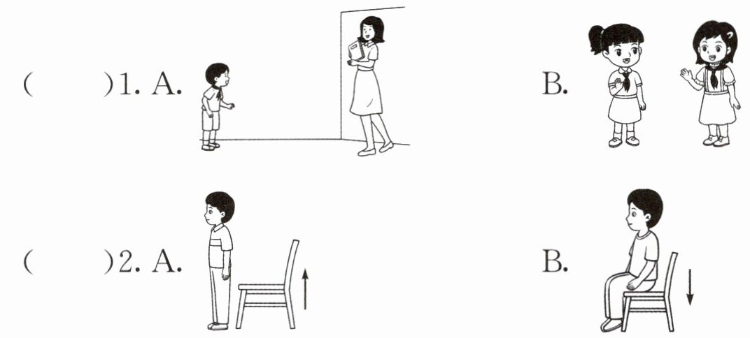 二、听对话,选图片。请根据你听到的对话内容,选出相应的图片,并将其字母标号填入题前括号内。每小题读两遍。
