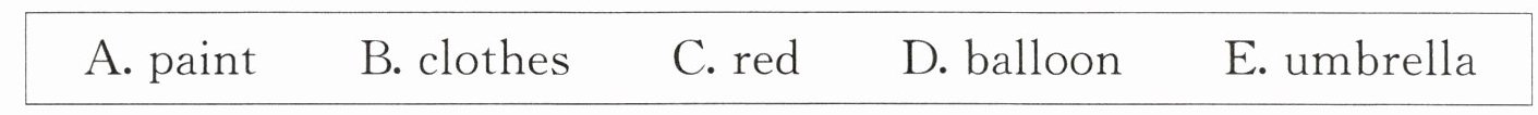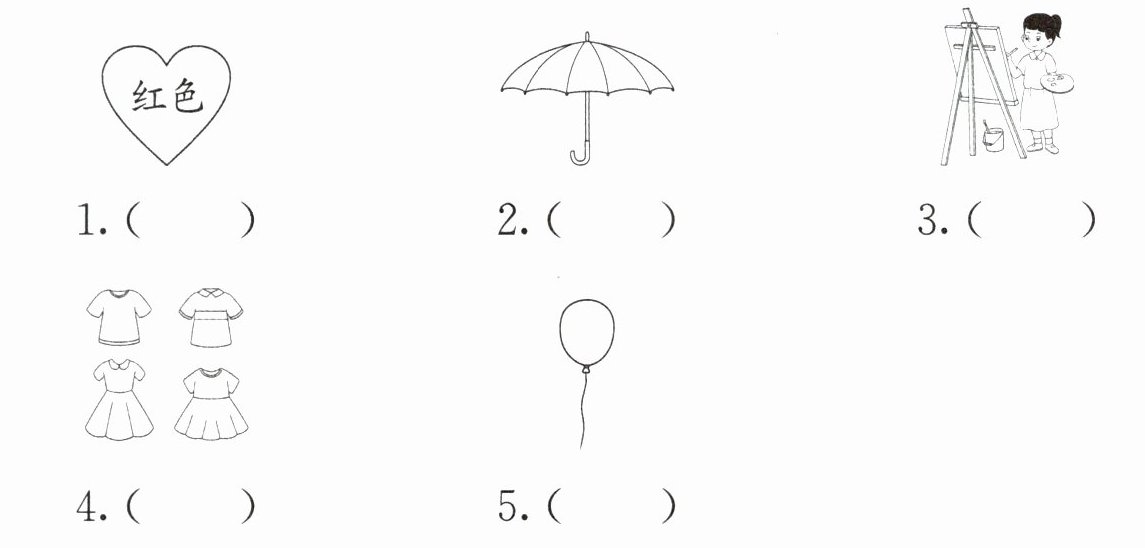 一、看图,认词语。请根据所给的图片,从方框中找出相对应的词语,并将词语前的字母标号填入图下括号内。