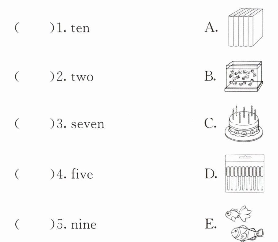 一、请将数字与相应数量的物品配对,并将其字母标号填入题前括号内。