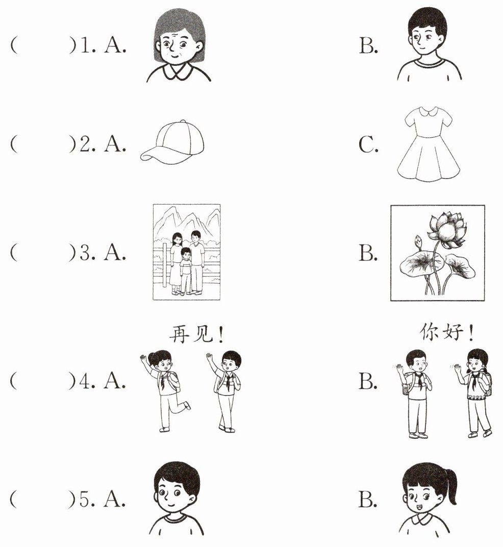 一、听句子,选图片。请选出与你听到的句子意思相符的图片,并将其字母标号填入题前括号内。每小题读两遍。