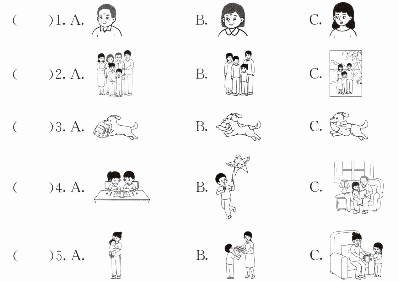 四、听对话,选图片。请根据你听到的对话内容,选出相应的图片,并将其字母标号填入题前括号内。每小题读两遍。