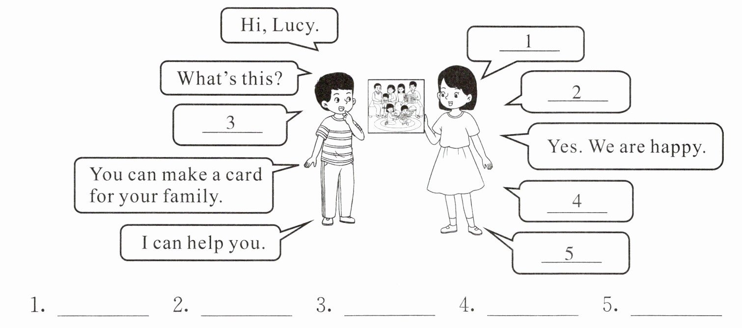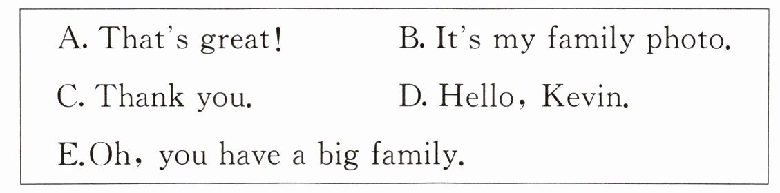 三、情景会话。请从方框中选出恰当的句子补全对话,并将其字母标号填在题目下方的横线上。