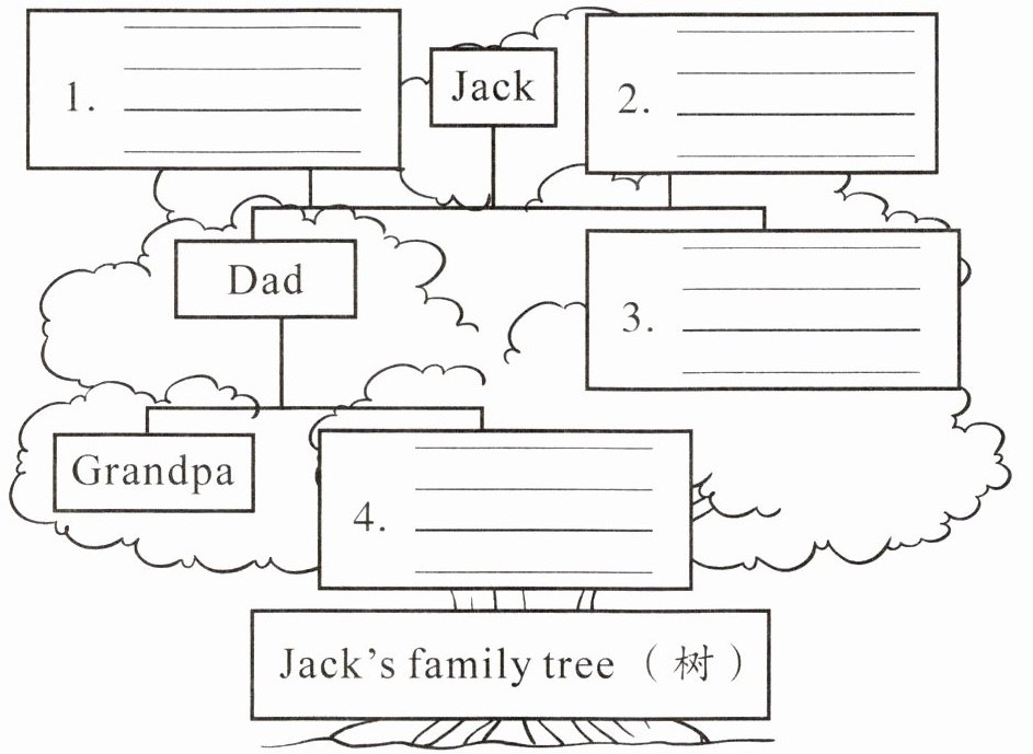 【任务一】请根据短文内容,补充 Jack 的家庭树,完成第 1—4 小题。