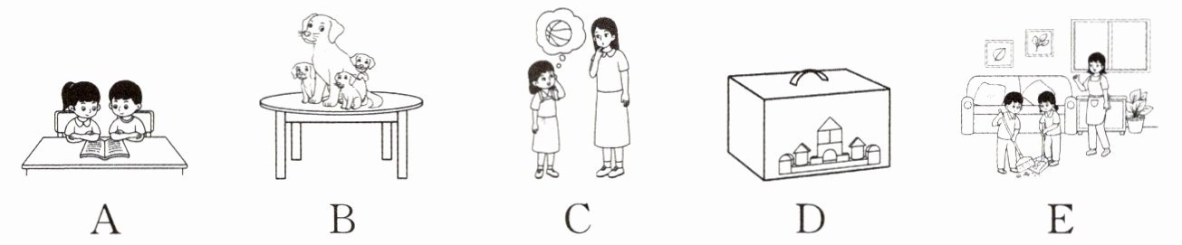 二、请认真读句子,选择与句子内容相匹配的图片,并将其字母标号填入题前括号内。