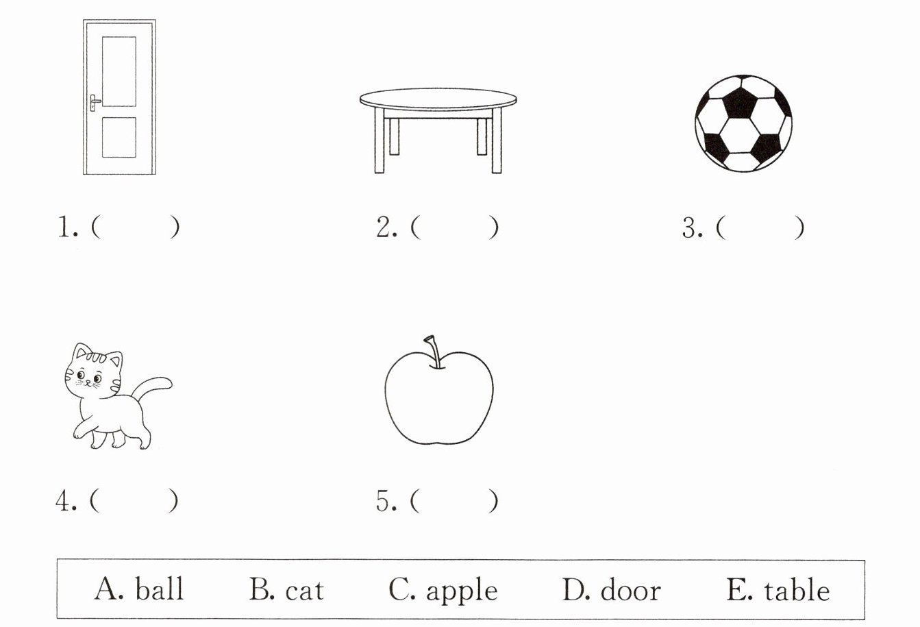 一、看图,认词语。请根据所给的图片,从方框中找出相对应的词语,并将词语前的字母标号填入图下括号内。