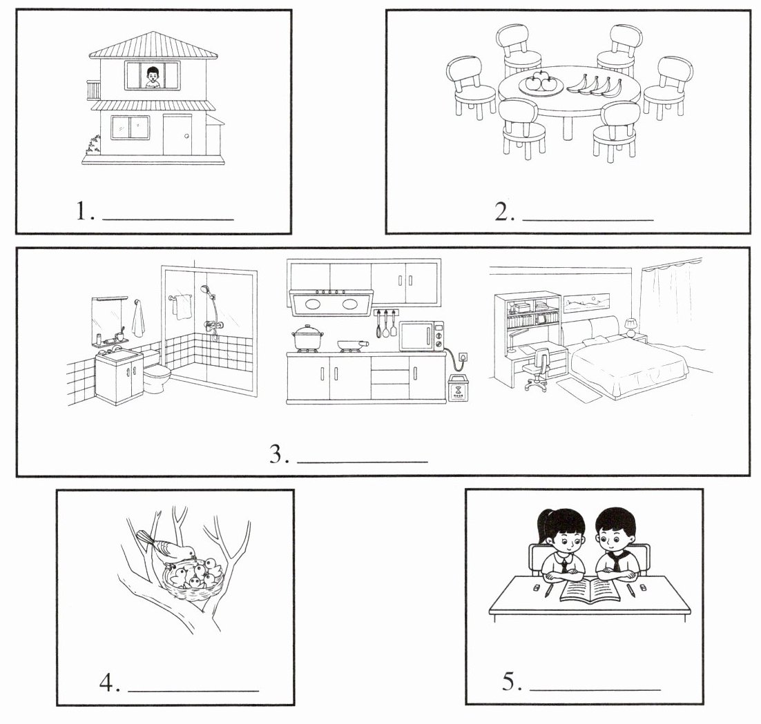 二、认读句子。请将句子前的字母标号填在相应卡片里的横线上。