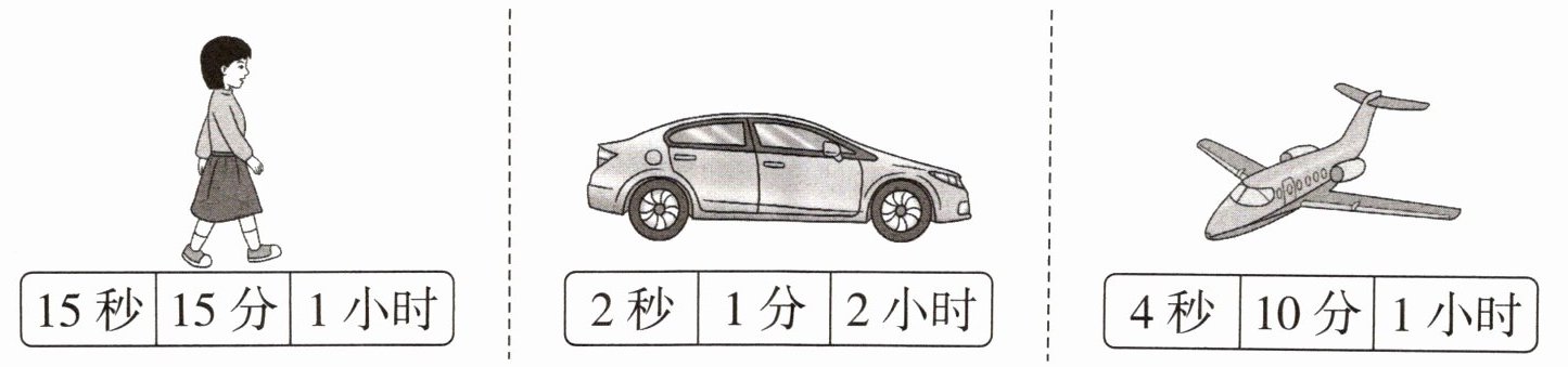 4. 用下面的出行方式行1千米需要多长时间?圈出合适的答案。