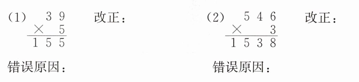 3. 请你写出下面计算错误的原因,并改正。