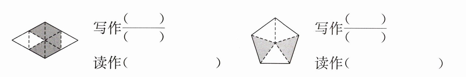 2. 用分数表示下面各图中的涂色部分,并读出分数。