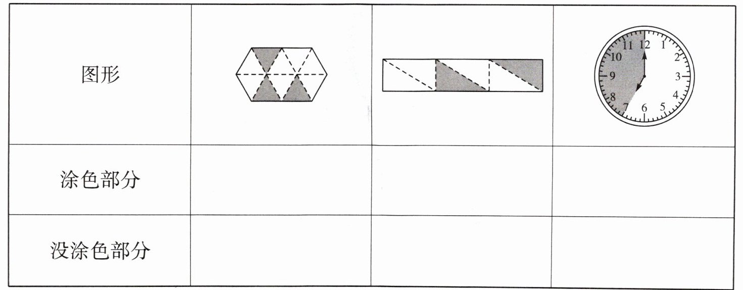3. 用分数表示下面各图的涂色部分和没涂色部分。