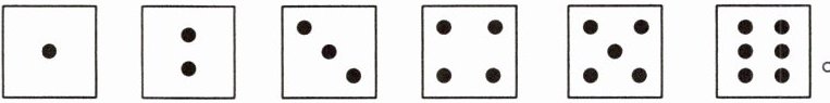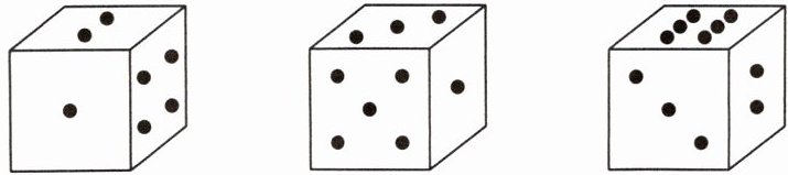 。下面是3名同学从不同角度看到的图形。这个正方体相对的两个面上的点数相加的和分别是多少?
